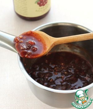 Приготовить соус. В сотейник выложить 3 ст. л. брусничного соуса d,arbo