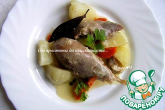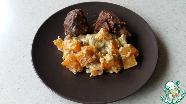 Сверху намазать каждый кусочек соусом. Форму закрыть крышкой или фольгой, готовить в разогретой до 200 град. духовке ориентировочно 45 минут.