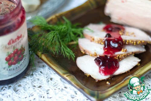 Очень вкусно кусочек окорока на бутерброд, сверху поливая клюквенным соусом от D'arbo.