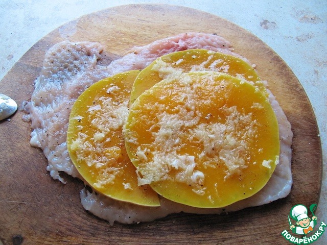 Рецепт «Рулетики из куриного филе с тыквой»: