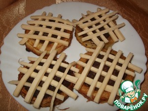• Делаем из сыра решётку на наших "котлетках" и ставим в микроволновку на пару минут.
