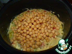 За 15-20 минут до окончания программы - аккуратно перемешать содержимое чаши, добавить по вкусу соль и черный молотый перец. И добавить нут. Еще раз аккуратно (чтобы не передавить овощи) перемешать и готовить до окончания программы.