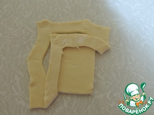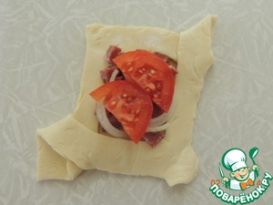 Тесто нарезать квадратики, у меня на этот рас не очень квадратное получилось...