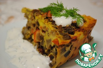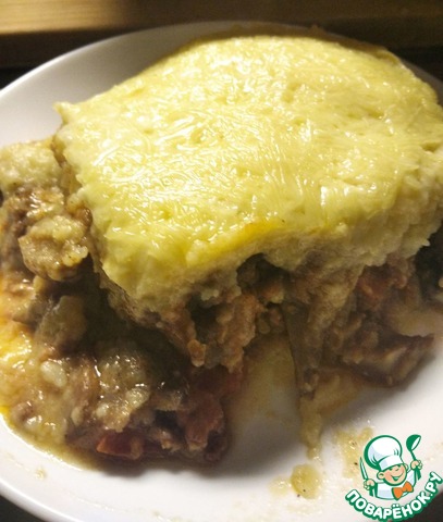 Запеканка из картофеля с мясо-грибной прослойкой.