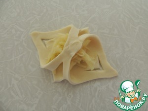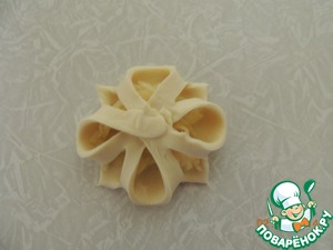 Склеите остальные два угла, и получается цветочек. Выпекаем в разогретую духовку до 200 С на 25-30 минут. Приятного аппетита!