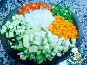 Овощи порежем мелко кубиками, с баклажана снять кожицу