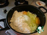 Всыпать муку. Мука в данном рецепте лучше манки, поскольку манку обычно добавляют, чтобы она разбухла и не выпускала сок. С кабачковыми оладьями просто нет времени на разбухание манки, поэтому используем только муку. Во время жарки, которая занимает очень мало времени, манка не успеет дойти до нужной кондиции. Очень важно соблюдать пропорции, чтобы оладьи получились нежными.