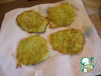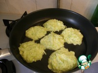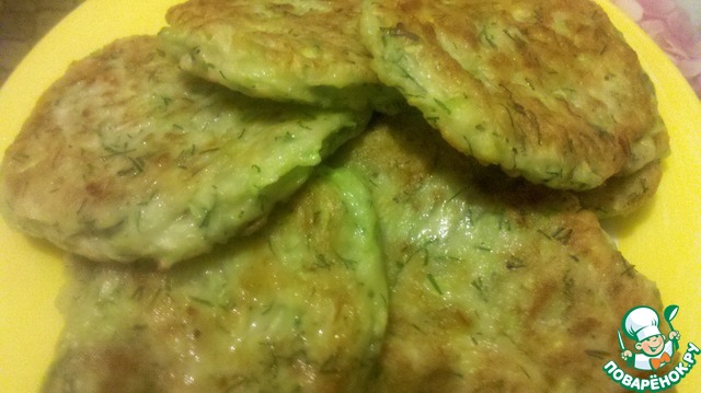 Ложкой выложить кабачковую массу на сковороду и накрыть крышкой. Крышкой накрывать обязательно, поскольку муки у нас немного. Яйца должны быстро схватить весь кабачковый фарш. Если есть возможность жарить оладушки на 2-х сковородах одновременно, то лучше сделать так, чтобы не вытек сок из кабачков. Жарить с 2-х сторон по 1.5-3 минуты (в зависимости от Вашей плиты) до розового цвета. Переворачивать широкой лопаткой, очень аккуратно, чтобы оладьи не развалились.