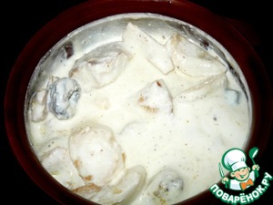 Горшочки поместить в духовой шкаф и готовить при температуре 150 градусов около часа.