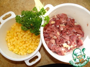 Мясо индейки освободить от костей, хрящей, сухожилий.