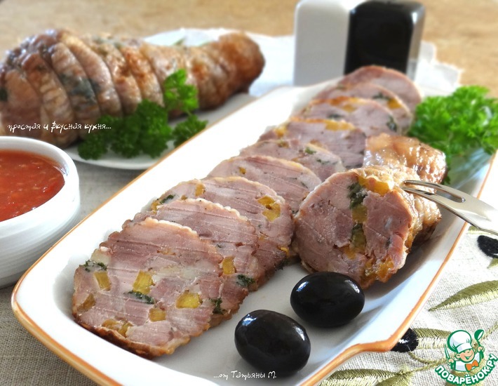 Рецепт «Холодная закуска из фаршированной голени индейки»: