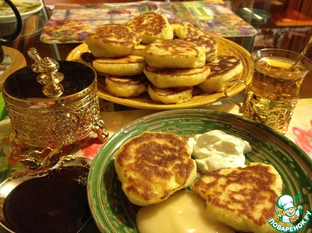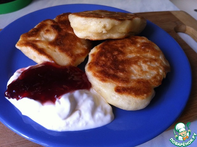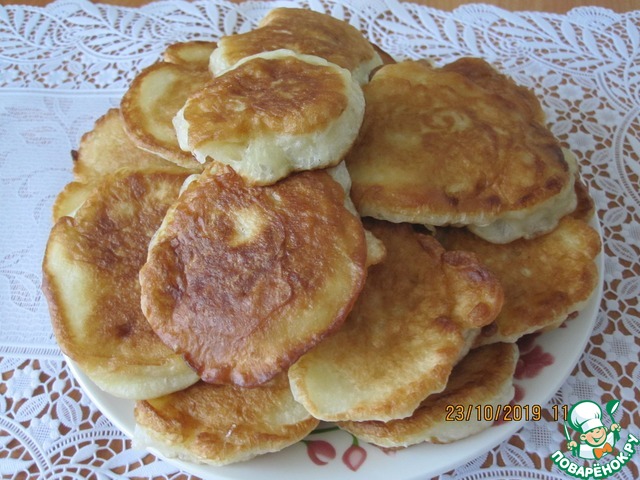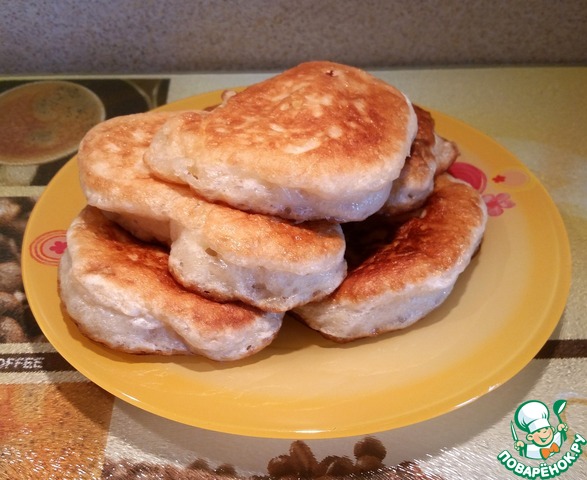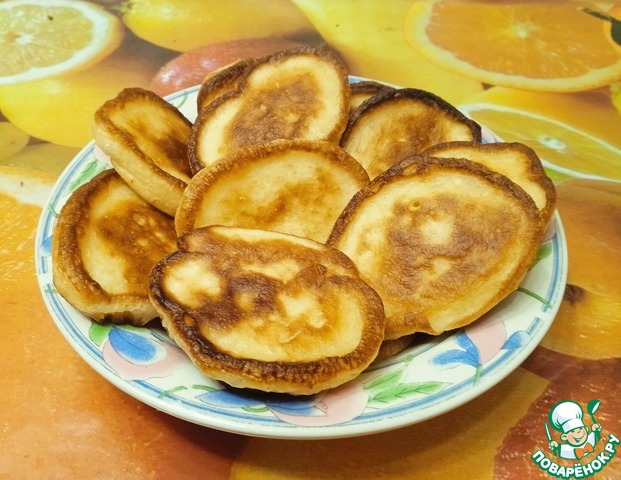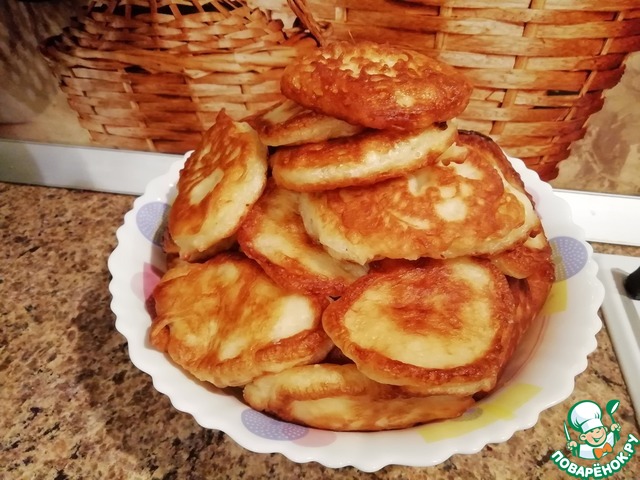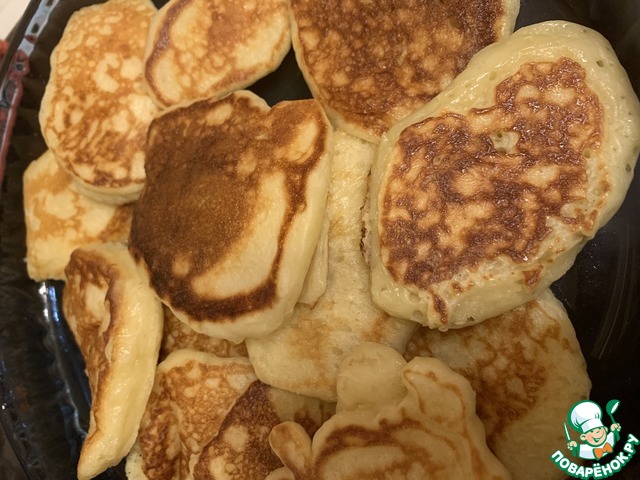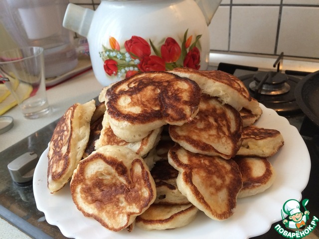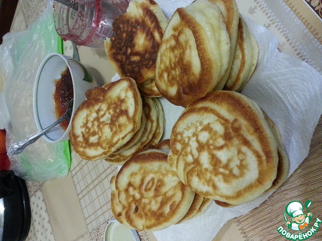 Ну, а затем, как тесто хорошо поднялось, жарим оладьи на растительном масле. Всё, как обычно...