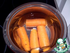 Отварить морковь в мундире. Остудить. Почистить.