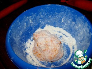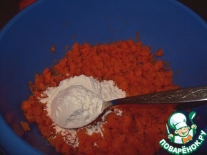 К морковному пюре добавляем 3 - 5 столовых ложки муки.