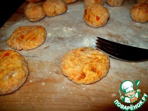 С помощью вилки раслющиваем шакрики в лепешечки.