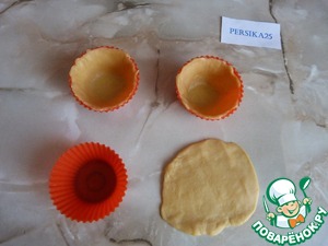 • Разделите тесто на кусочки и раскатайте их на кружочки подходящие под размер формочек.