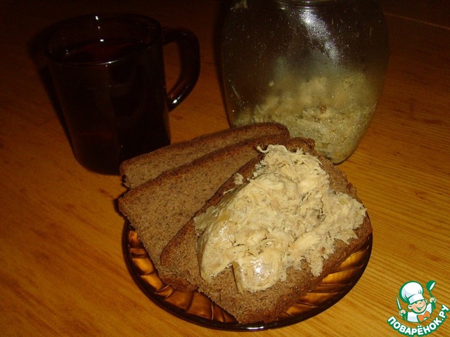 Из курицы получилось 2 пол-литровые банки. Дети смели все в один присест. Ели отобрал у ник то, что видно на фотке. Какой там гусиный жир?! Блюдо долго никак не хранится