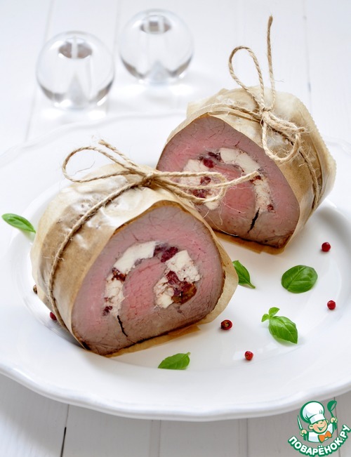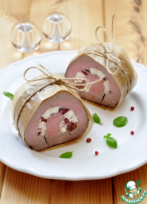 Рецепт «Запеченное мясо с брынзой и вялеными томатами»: