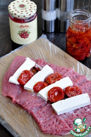 Ингредиенты для «Запеченное мясо с брынзой и вялеными томатами»: