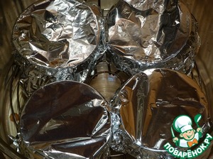 Формы накрыть фольгой и поставить в разогретую духовку. Выпекать 40-45 минут, через 20 минут фольгу снять.