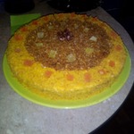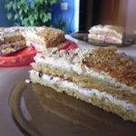 Верх коржа и бока торта обмазать кремом и...