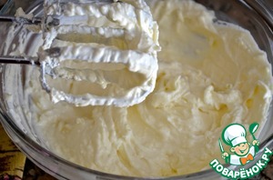 1. Взбить масло и сыр миксером 2-3 минуты, постепенно вбить 125 г сахарной пудры и добавить ванильную эссенцию.