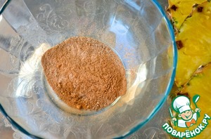 4. В миске смешать корицу, разрыхлитель, мускатный орех, имбирь, перец, гвоздику и соль. Размешать и добавить муку.