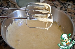 7. В три захода добавить смесь муки и специй, продолжая взбивать.