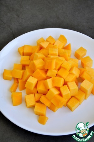 Тыкву помыть, почистить, нарезать мелкими кубиками.
