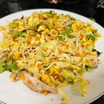 Добавляем яйцо, лапшу и соевый сладкий соус (kecap manis) и всё тщательно перемешиваем. Для удобства помешивания и употребления, лапшу можно предварительно поломать на более мелкие куски. Если любите лапшу длинную, то мешать можно двумя вилками или широкой лопаткой.