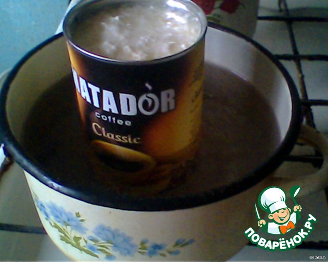 Потребуется кастрюля воды и маленькая кастрюлька, которую можно в нее поставить. У меня такой нет, поэтому я использовала пустую банку из под кофе (200гр).