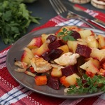 Вкусное и полезное блюдо. Сладкая свекла и куриное филе гармонично сочетаются в нем. Количество продуктов в рецепте зависит от формы, в которой оно будет готовиться, и ваших вкусовых предпочтений.