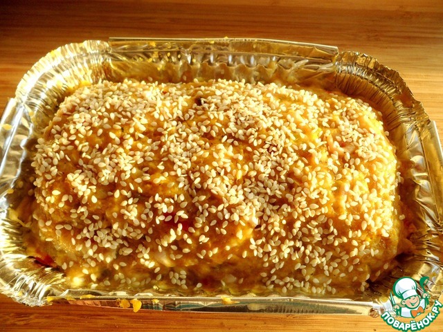 И выкладываем в смазанную растительным маслом IDEAL форму, верх смазываем растительным маслом IDEAL, посыпаем кунжутом. Запекать 1 час при температуре 180 градусов.
