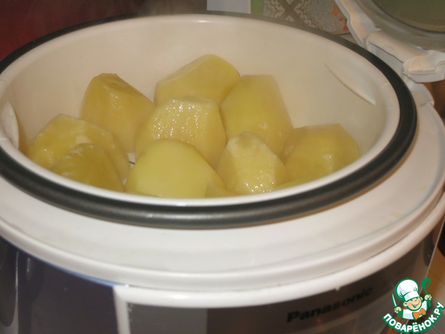 Вкус у соуса получается довольно насыщенный, потому лучше подавать с гарниром нейтральный по вкусу. Я забросила картофель в пароварку (готовится минут 25-30), как раз пока занимаемся печенкой и соусом.