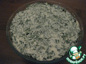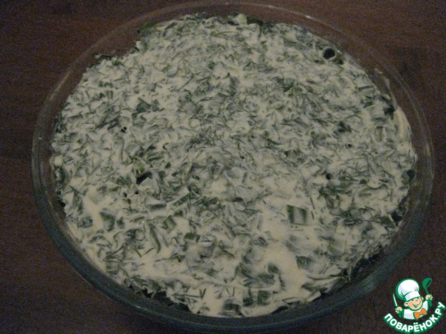 Поискала, но в моем салатике - слой из зелени с луком. Кстати я как-то сделала просто с зеленью без зеленого лука, так вот как ни странно салат показался пресноватым !