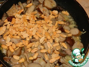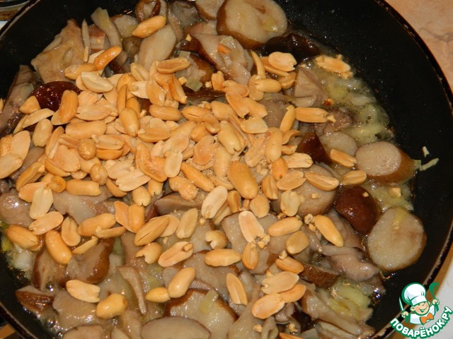 • Добавить к грибам арахис и жарить ещё 2-3 минуты.