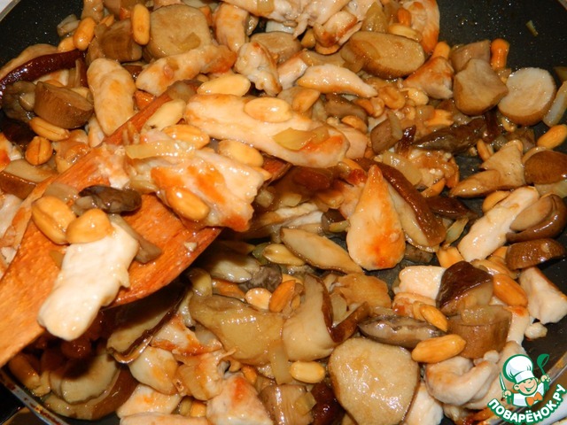 Рецепт «Грибы с курицей и арахисом»: