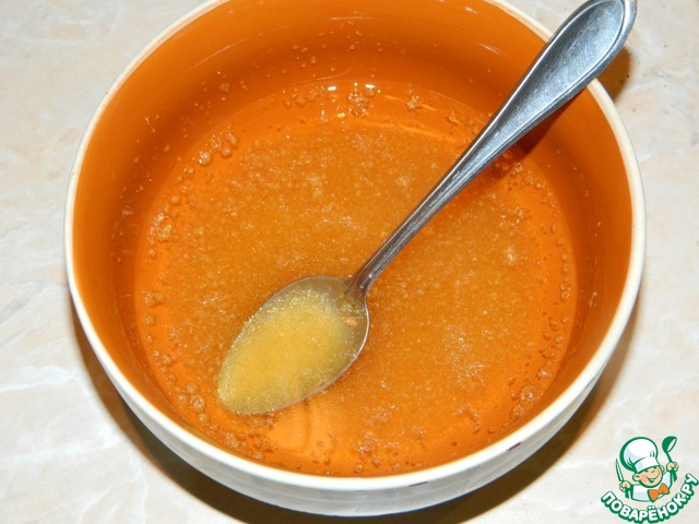 • Для крема заливаем желатин водой и оставляем минут на 30.