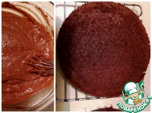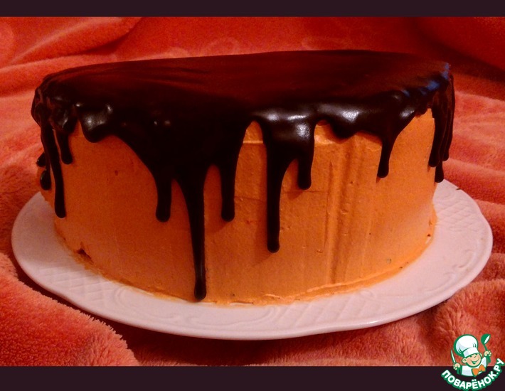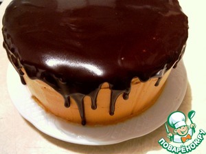 Соберите торт:корж, крем. корж. покройте верх и бока торта кремом, полейте сверху глазурью.