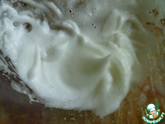 По одной ложке добавляем взбитый белок, аккуратно перемешивая.
