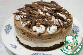 Готовим мусс из молочного шоколада, так же как и темный. Выливам молочный мусс на остывший темный мусс, убираем форму в холодильник для замерзания.
