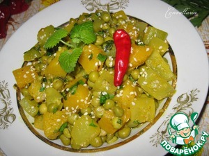 Рецепт «Цуккини с тыквой и зеленым горошком»: