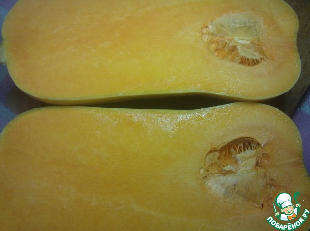 • Тыкву разрезать вдоль.