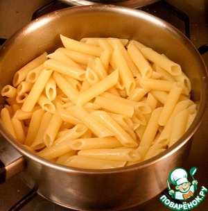 Отварить пасту в большом количестве соленой воды по инструкции на упаковке.