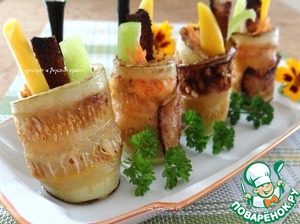 Рецепт «Закуска из кабачка с чесночной морковной начинкой»: