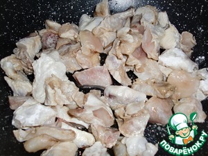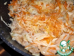 Овощи положить в сковородку, где жарятся язычки. Размешать, готовить овощи с языками минут пять. Затем добавить устричный соус и потушить минут пять.