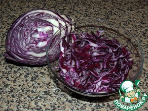 Капусту (3/4 небольшого кочана) нарезать соломкой.
