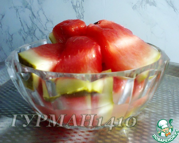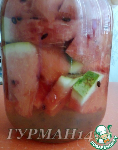 Если вы купили арбуз и он оказался не очень зрелым или вяловатым или просто не смогли одолеть, то можно его засолить или законсервировать на зиму. Вкус кисло сладкий, освежающий, не похож на вкус свежего арбуза. Законсервированный арбуз будет прекрасной закуской к зимнему столу.