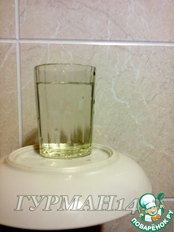 5. В граненую сто граммовую стопку налить столовый уксус 9% не доливая до краев (приблизительно 1,5см).