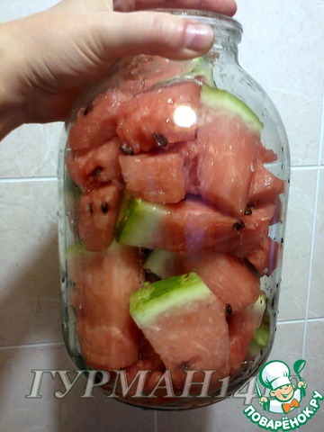 2. Сложить порезанный арбуз в 3-х литровую банку (не утрамбовывать!!!).